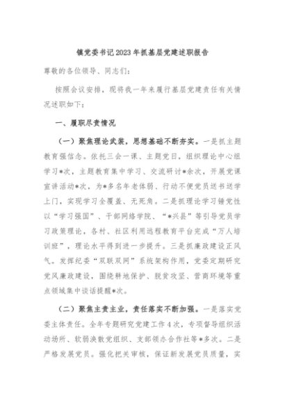/ 【七哥公文】2024年:镇党委书记2023年抓基层党建述职报告+更多免费公文+VX:QiGeGongWen2024