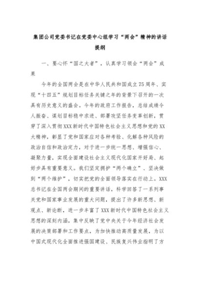 【七哥公文】2024年:集团公司党委书记在党委中心组学习“两会”精神的讲话提纲+更多免费公文+VX:QiGeGongWen2024