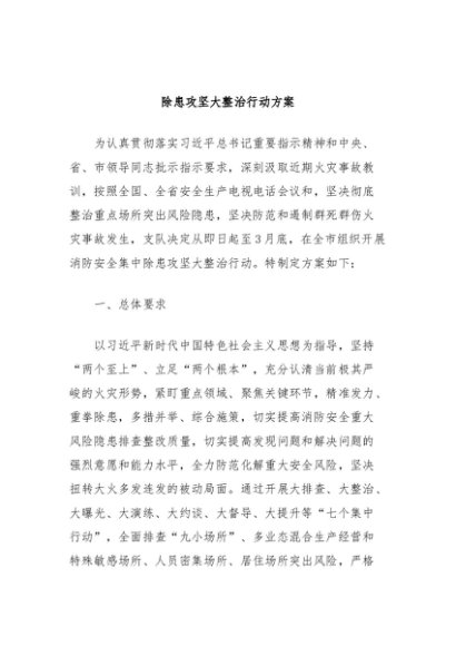 【七哥公文】2024年:除患攻坚大整治行动方案+更多免费公文+VX:QiGeGongWen2024