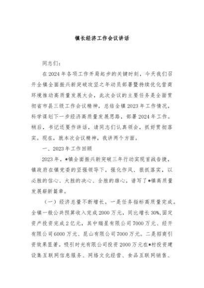 【七哥公文】2024年:镇长经济工作会议讲话+更多免费公文+VX:QiGeGongWen2024