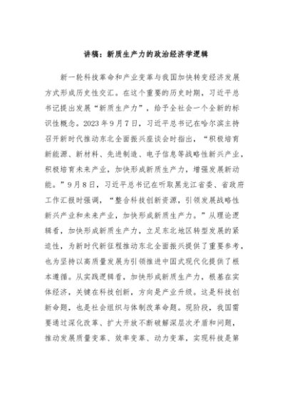 / 【七哥公文】2024年:讲稿:新质生产力的政治经济学逻辑+更多免费公文+VX:QiGeGongWen2024