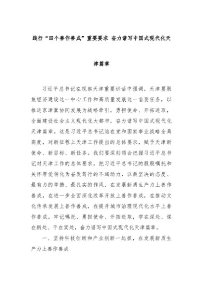 【七哥公文】2024年:践行“四个善作善成”重要要求 奋力谱写中国式现代化天津篇章+更多免费公文+VX:QiGeGongWen2024
