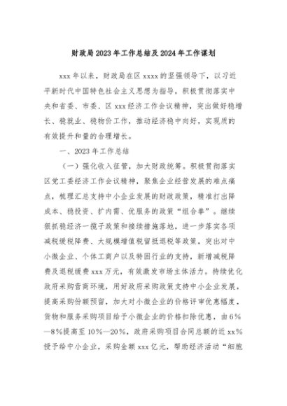 / 【七哥公文】2024年:财政局2023年工作总结及2024年工作谋划+更多免费公文+VX:QiGeGongWen2024