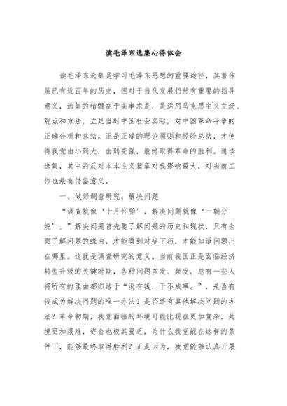 【七哥公文】2024年:读毛泽东选集心得体会+更多免费公文+VX:QiGeGongWen2024