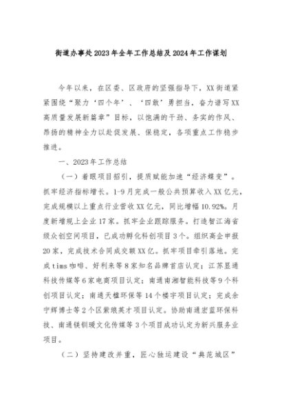 【七哥公文】2024年:街道办事处2023年全年工作总结及2024年工作谋划+更多免费公文+VX:QiGeGongWen2024