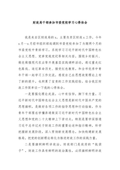 / 【七哥公文】2024年:财政局干部参加市委党校学习心得体会+更多免费公文+VX:QiGeGongWen2024