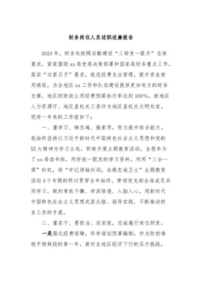 / 【七哥公文】2024年:财务岗位人员述职述廉报告+更多免费公文+VX:QiGeGongWen2024