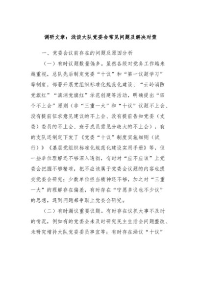 / 【七哥公文】2024年:调研文章:浅谈大队党委会常见问题及解决对策+更多免费公文+VX:QiGeGongWen2024