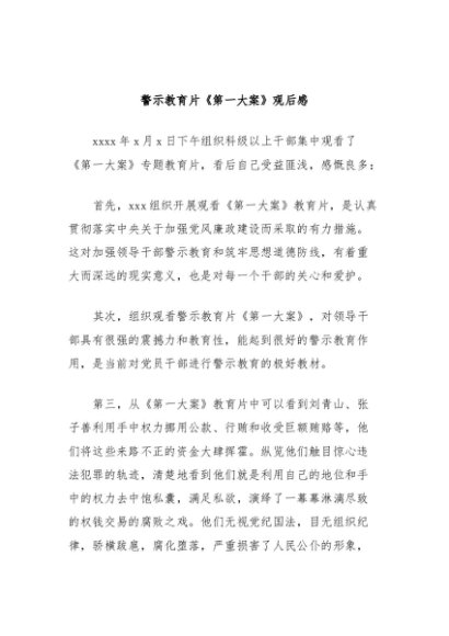 / 【七哥公文】2024年:警示教育片《第一大案》观后感+更多免费公文+VX:QiGeGongWen2024