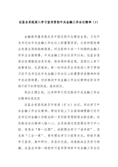 【七哥公文】2024年:证监会系统深入学习宣传贯彻中央金融工作会议精神(1)+更多免费公文+VX:QiGeGongWen2024