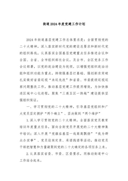 / 【七哥公文】2024年:街道2024年度党建工作计划+更多免费公文+VX:QiGeGongWen2024