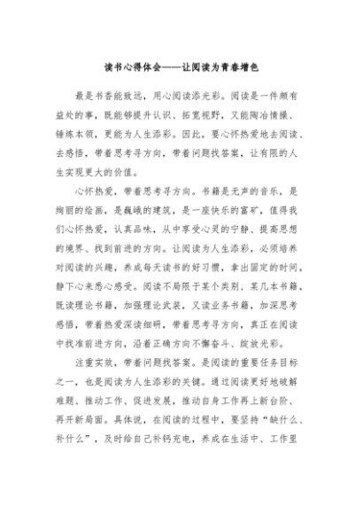 / 【七哥公文】2024年:读书心得体会——让阅读为青春增色+更多免费公文+VX:QiGeGongWen2024