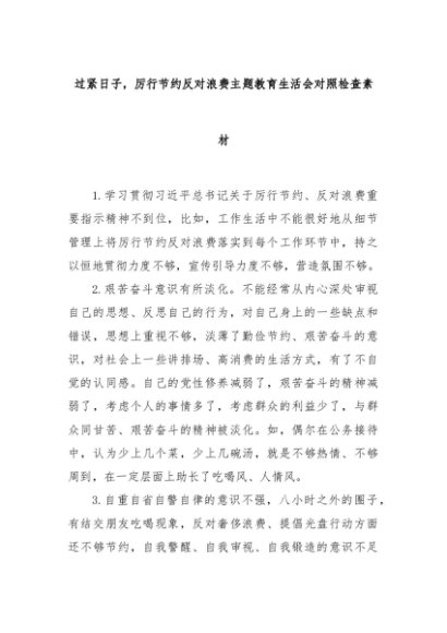 【七哥公文】2024年:过紧日子,厉行节约反对浪费主题教育生活会对照检查素材+更多免费公文+VX:QiGeGongWen2024