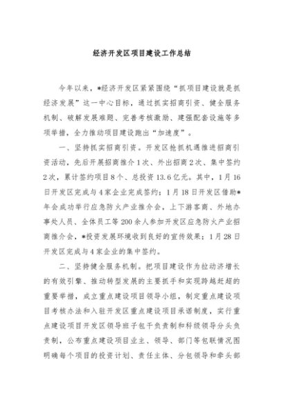 / 【七哥公文】2024年:经济开发区项目建设工作总结+更多免费公文+VX:QiGeGongWen2024