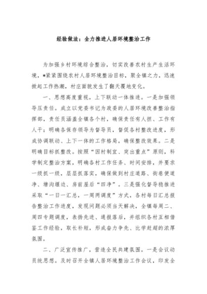 【七哥公文】2024年:经验做法:全力推进人居环境整治工作+更多免费公文+VX:QiGeGongWen2024