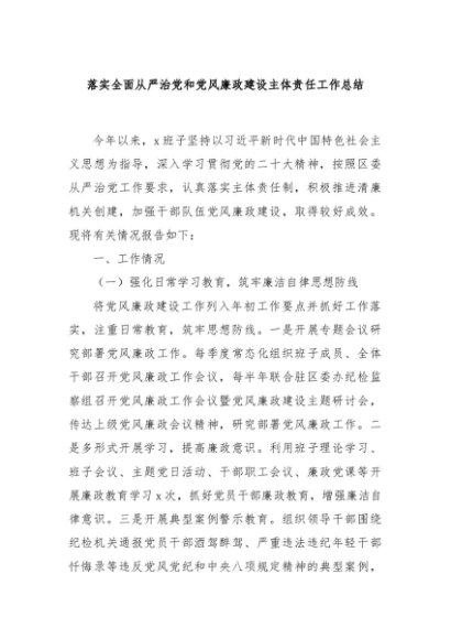 / 【七哥公文】2024年:落实全面从严治党和党风廉政建设主体责任工作总结+更多免费公文+VX:QiGeGongWen2024