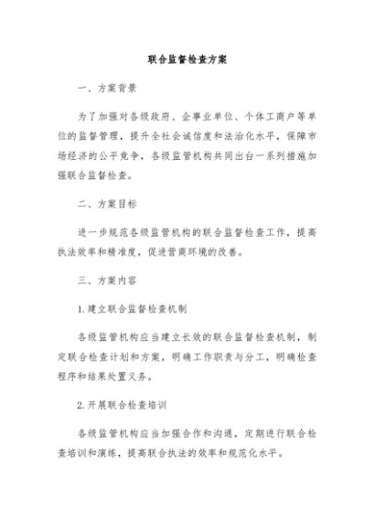 / 【七哥公文】2024年:联合监督检查方案+更多免费公文+VX:QiGeGongWen2024