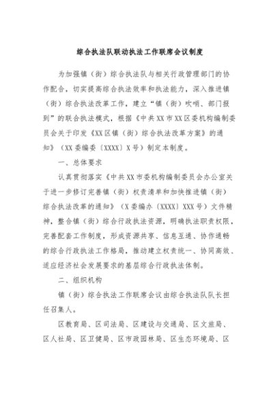 / 【七哥公文】2024年:综合执法队联动执法工作联席会议制度+更多免费公文+VX:QiGeGongWen2024