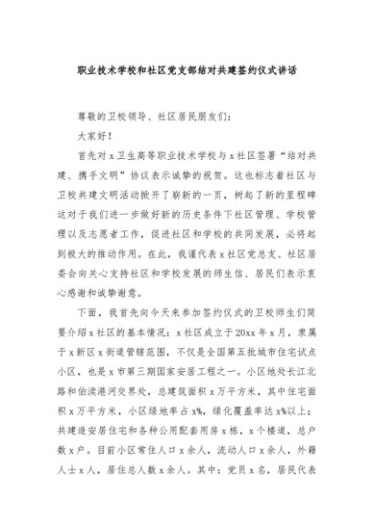 / 【七哥公文】2024年:职业技术学校和社区党支部结对共建签约仪式讲话+更多免费公文+VX:QiGeGongWen2024