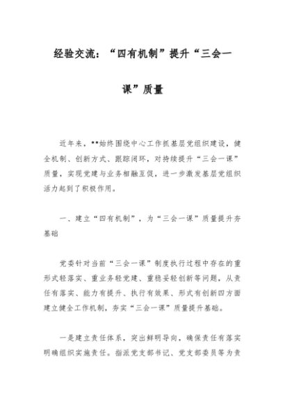 / 【七哥公文】2024年:经验交流:“四有机制”提升“三会一课”质量+更多免费公文+VX:QiGeGongWen2024
