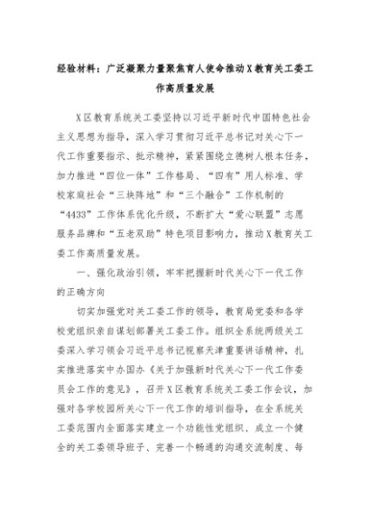 【七哥公文】2024年:经验材料:广泛凝聚力量聚焦育人使命推动X教育关工委工作高质量发展+更多免费公文+VX:QiGeGongWen2024