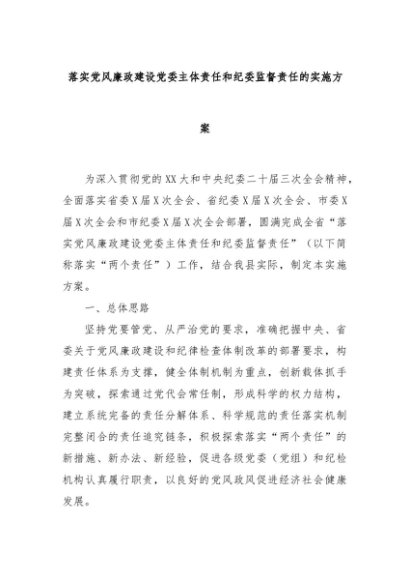 【七哥公文】2024年:落实党风廉政建设党委主体责任和纪委监督责任的实施方案+更多免费公文+VX:QiGeGongWen2024