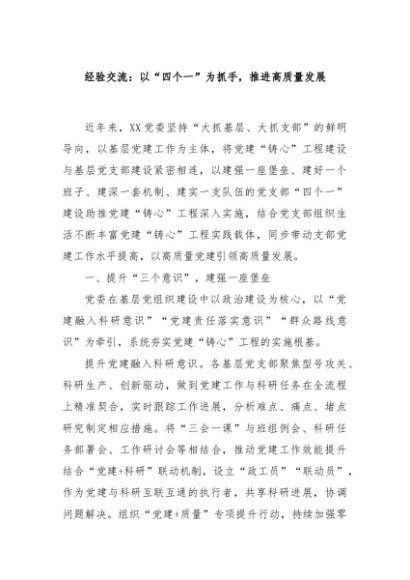 / 【七哥公文】2024年:经验交流:以“四个一”为抓手,推进高质量发展+更多免费公文+VX:QiGeGongWen2024