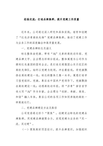 / 【七哥公文】2024年:经验交流:打造品牌集群,提升党建工作质量+更多免费公文+VX:QiGeGongWen2024