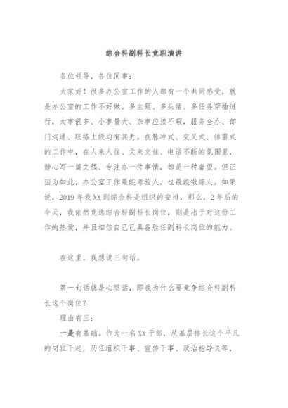/ 【七哥公文】2024年:综合科副科长竞职演讲+更多免费公文+VX:QiGeGongWen2024