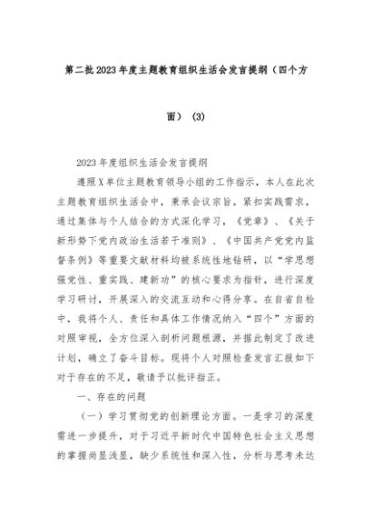 【七哥公文】2024年:第二批2023年度主题教育组织生活会发言提纲(四个方面)+更多免费公文+VX:QiGeGongWen2024