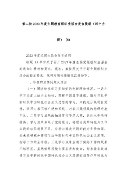 【七哥公文】2024年:第二批2023年度主题教育组织生活会发言提纲(四个方面) (6)+更多免费公文+VX:QiGeGongWen2024