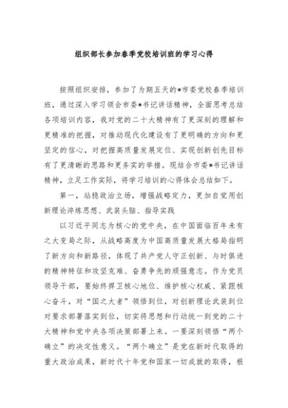 / 【七哥公文】2024年:组织部长参加春季党校培训班的学习心得+更多免费公文+VX:QiGeGongWen2024