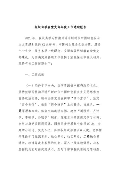 / 【七哥公文】2024年:组织部联合党支部年度工作述职报告+更多免费公文+VX:QiGeGongWen2024
