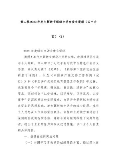 【七哥公文】2024年:第二批2023年度主题教育组织生活会发言提纲(四个方面)(1)+更多免费公文+VX:QiGeGongWen2024