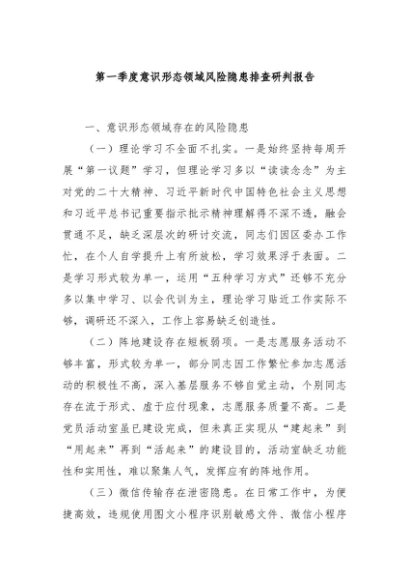 【七哥公文】2024年:第一季度意识形态领域风险隐患排查研判报告+更多免费公文+VX:QiGeGongWen2024