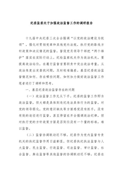 / 【七哥公文】2024年:纪委监委关于加强政治监督工作的调研报告+更多免费公文+VX:QiGeGongWen2024