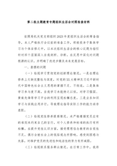 / 【七哥公文】2024年:第二批主题教育专题组织生活会对照检查材料+更多免费公文+VX:QiGeGongWen2024