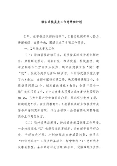 / 【七哥公文】2024年:组织系统亮点工作总结和计划+更多免费公文+VX:QiGeGongWen2024