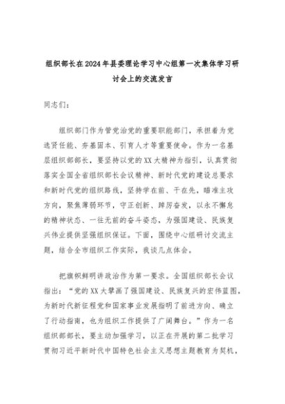 【七哥公文】2024年:组织部长在2024年县委理论学习中心组第一次集体学习研讨会上的交流发言+更多免费公文+VX:QiGeGongWen2024