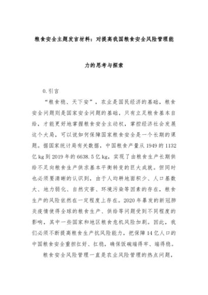【七哥公文】2024年:粮食安全主题发言材料:对提高我国粮食安全风险管理能力的思考与探索+更多免费公文+VX:QiGeGongWen2024