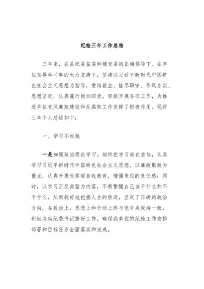 【七哥公文】2024年:纪检三年工作总结+更多免费公文+VX:QiGeGongWen2024