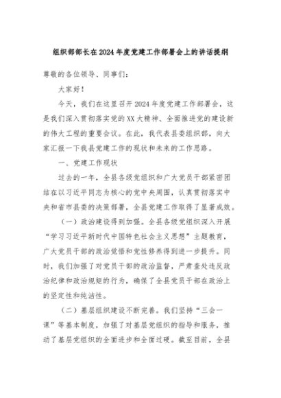 【七哥公文】2024年:组织部部长在2024年度党建工作部署会上的讲话提纲+更多免费公文+VX:QiGeGongWen2024
