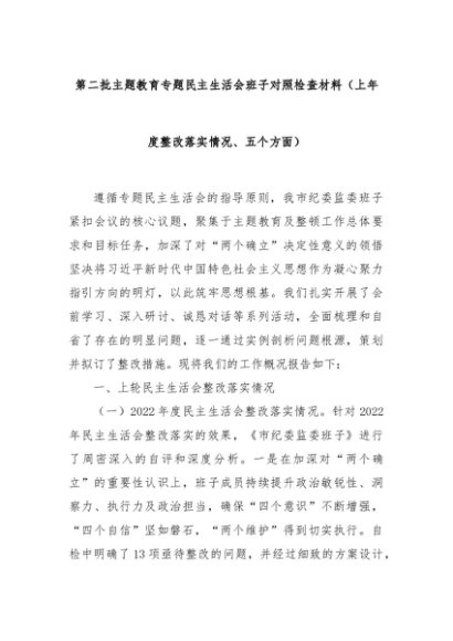 【七哥公文】2024年:第二批主题教育专题民主生活会班子对照检查材料(上年度整改落实情况、五个方面)+更多免费公文+VX:QiGeGongWen2024