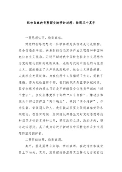 【七哥公文】2024年:纪检监察教育整顿交流研讨材料:做到三个真字+更多免费公文+VX:QiGeGongWen2024