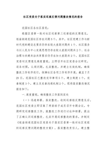 / 【七哥公文】2024年:社区党委关于落实巡察反馈问题整改情况的报告+更多免费公文+VX:QiGeGongWen2024