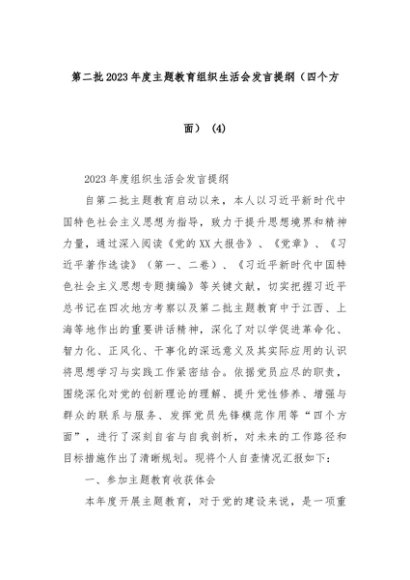 【七哥公文】2024年:第二批2023年度主题教育组织生活会发言提纲(四个方面) (3)+更多免费公文+VX:QiGeGongWen2024
