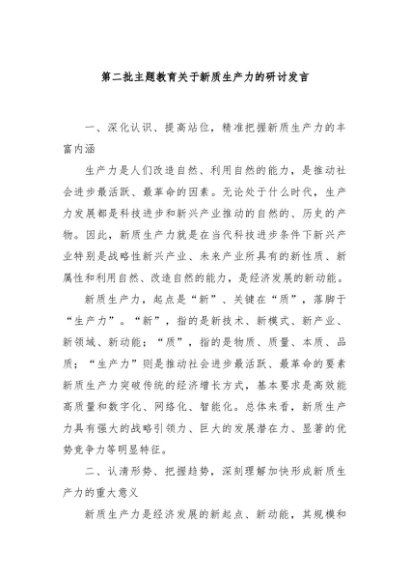 / 【七哥公文】2024年:第二批主题教育关于新质生产力的研讨发言+更多免费公文+VX:QiGeGongWen2024