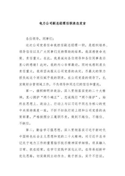 / 【七哥公文】2024年:电力公司副总经理任职表态发言+更多免费公文+VX:QiGeGongWen2024
