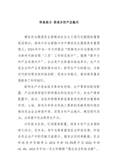 【七哥公文】2024年:科技助力 促进乡村产业振兴+更多免费公文+VX:QiGeGongWen2024