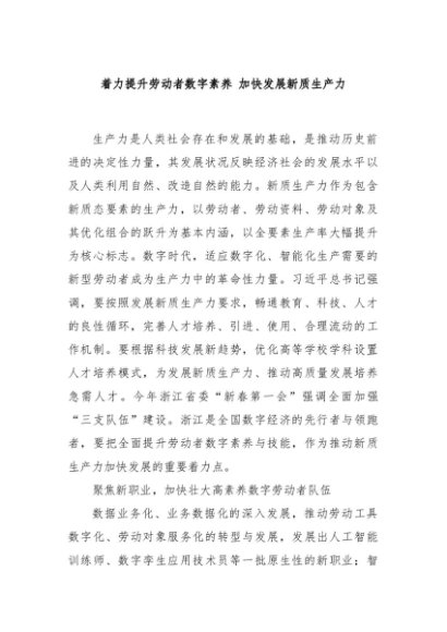 / 【七哥公文】2024年:着力提升劳动者数字素养 加快发展新质生产力+更多免费公文+VX:QiGeGongWen2024